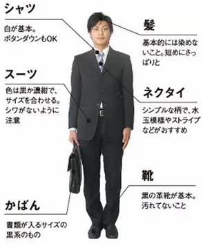 日本正式场合的着装,主要是西装。根据场合的不同,西装的剪裁版型也不尽相同。与国内所了解的西装可能存在着一些不同。因此,要来日本考大学的同学们,来日后再购买西装不为是一个万全的选择。大家只需向店员说明要求,店员会推荐最佳选择。价格方面,普通的西装全套为三万日元到十万日元不等。